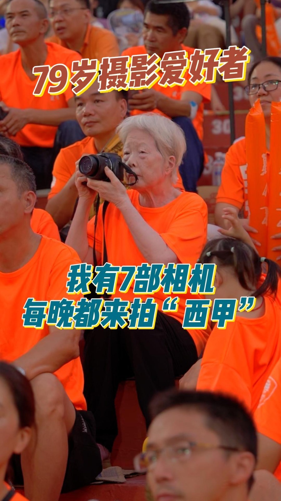 79岁摄影爱好者老奶奶:我有7部相机,每晚都来拍#佛山西甲 。#2024享佛山看西甲
