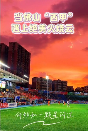 当#佛山西甲 遇上绝美火烧云,天空也染上两支球队的应援色。 #2024享佛山看西甲