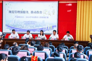 副镇长卢志豪向大会汇报了芦苞镇过去一个学年教育教学工作的情况。在刚刚结束的2023学年,芦苞镇继续把教育放在优先发展的战略地位,投入166万元,完成公办小学所有专用场室安装空调和电路扩容工程。全体学生均实现“舒心午睡”。投入40多万元,完成各公办小学的教室灯光改造。各公办学校均实现校园“人车分流”。