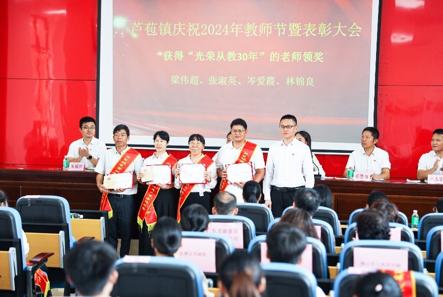 2024年9月10日上午,芦苞镇庆祝2024年教师节暨表彰大会在芦苞镇四合村委会会议室举行。三水区教育局副局长徐挺,镇党委书记徐昕,镇人大主席梁楚南,镇党委委员、副镇长朱镇洋,副镇长卢志豪,镇教育指导中心全体成员、各学校和幼儿园教师代表,以及捐资助学先进单位代表等约110人出席会议,镇党委副书记、镇长陆露丹主持会议。