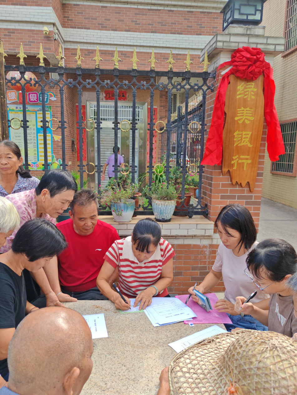 为更好地推进“绿美银行”工作铺开,芦苞镇与广州工商学院通过结对共建,组建“先锋宣讲团”开展“敲门行动”。当天,为村民群众讲解“绿美银行”运行机制60余次、派发宣传物资80多份。当日已吸引50多名村民踊跃开设“绿美存折”。