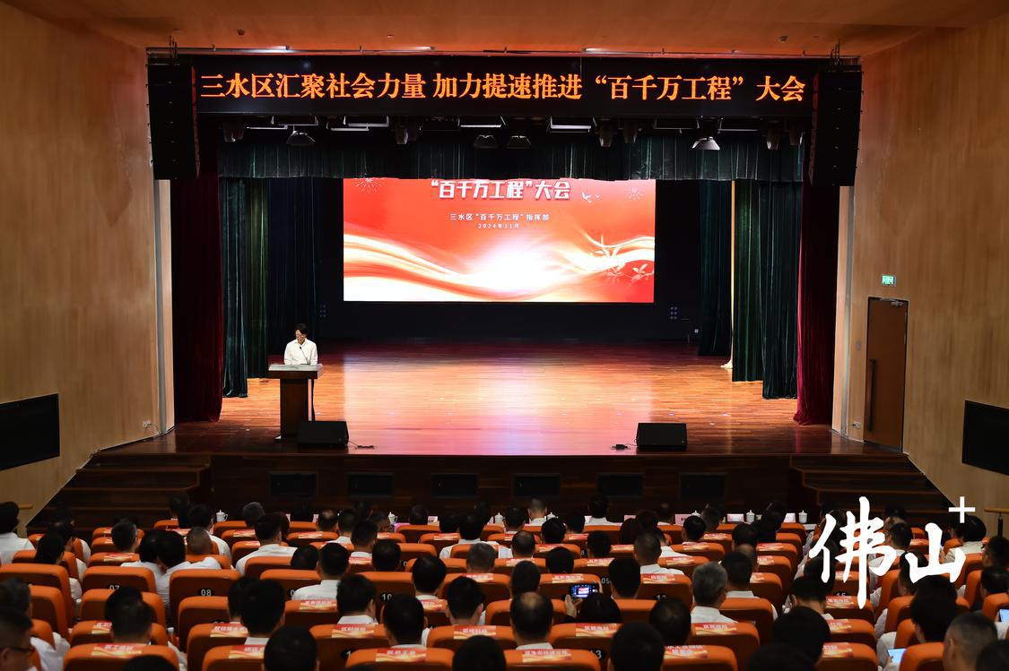 11月8日,三水区举行“汇聚社会力量·加力提速推进‘百千万工程’大会”,礼赞在“百千万工程”中给予大力支持的先进单位、突出贡献单位(个人),并签约10个现代农文科旅项目,动员全社会投身“百千万工程”,为佛山市创建广东省城乡区域协调发展改革创新实验区作贡献。