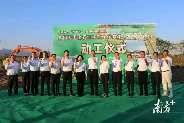 11月8日下午,在佛山市委农办专职副主任、市乡村振兴局副局长、市“百千万工程”指挥办副主任廖成林,三水区委副书记何小玲,三水区副区长、大塘镇党委书记钱静瑜等见证下,全国无害化农业种植示范基地项目(一期)三水大塘正式动工。