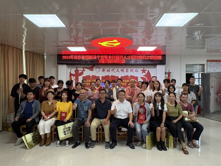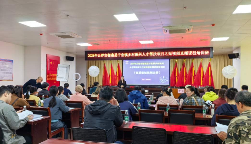 为助力乡村振兴行动,促进乡村人才发展,推进电商人员专业化,提高短视频直播技能水平,佛山市三水区驻云浮市帮扶工作组千官镇工作队携手三水区人社局和千官镇于2024年11月9-13日举办“2024年乡村振兴人才帮扶项目之短视频直播课程培训班”。