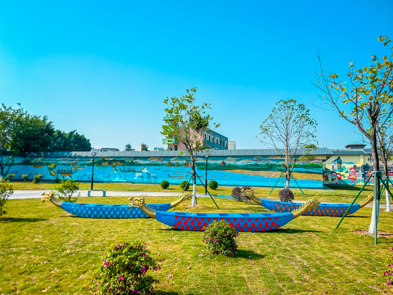 三星龙舟广场占地面积达13000平方米,由白坭本土的知名企业三星制锁实业有限公司投资438万元建造而成,公园设计以“龙舟百舸争流”为核心理念,通过环形园路、平台串联原有市民公园、停车场、市政道路,同时设置休闲广场、文化广场、活动广场。该公司成立于1993年,至今已有超过三十年的发展历程,公司董事长陈应标先生连续20余年出资出力致力于家乡建设。