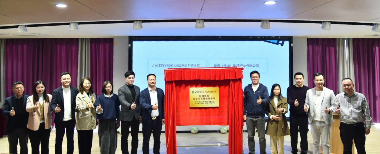 活动期间,星辉(佛山)影视产业有限公司与广州工商学院东北州立联合科技学院正式签署合作协议,共同成立“短剧电商:大学生实践教育基地”。基地的成立旨在通过校企合作模式,为学生提供更丰富的影视创作与实践机会,同时推动影视行业的人才培养。签约仪式和揭牌仪式后,双方领导和创作团队共同合影,标志着校企合作迈上了新的台阶。