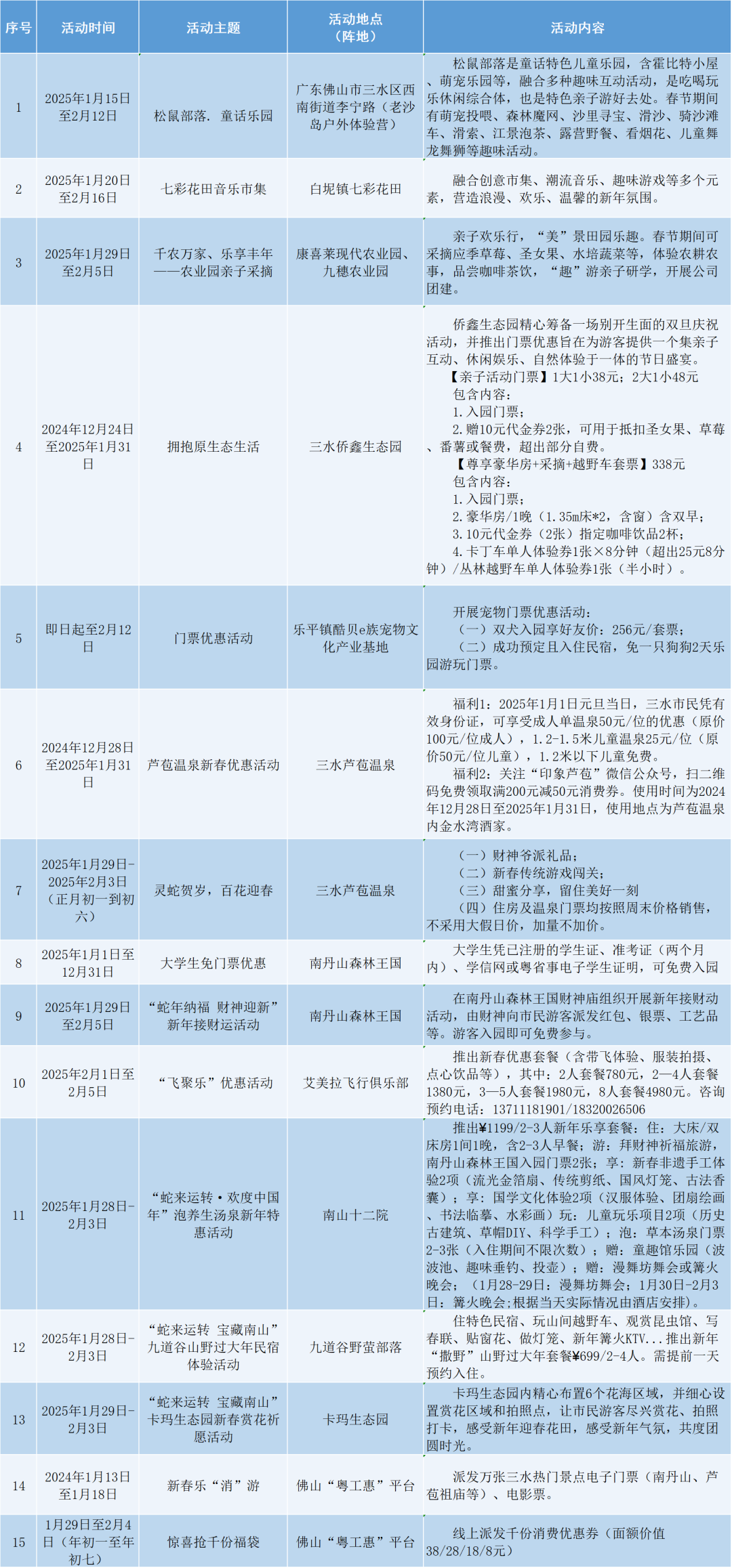 😍活动内容:主会场位于南山漫星城东南亚风情街,于1月29日早上9点(大年初一)举办漫星城春节潮玩游园会,设置多个主题区域,包括年货市集、非遗陶瓷手工艺品展示和亲子手工体验互动,融入东南亚美食、东南亚服装等元素,让游客在游览中体验东南亚风情和浓厚的节日氛围。在镇内多个文旅点位设置分会场,向游客派发新春盲盒宝藏南山福袋,包括镇内景区门票、住宿体验套房、飞行体验票券、餐饮优惠券及新春糖果礼包,向游客释放南山文旅满满的爱意。