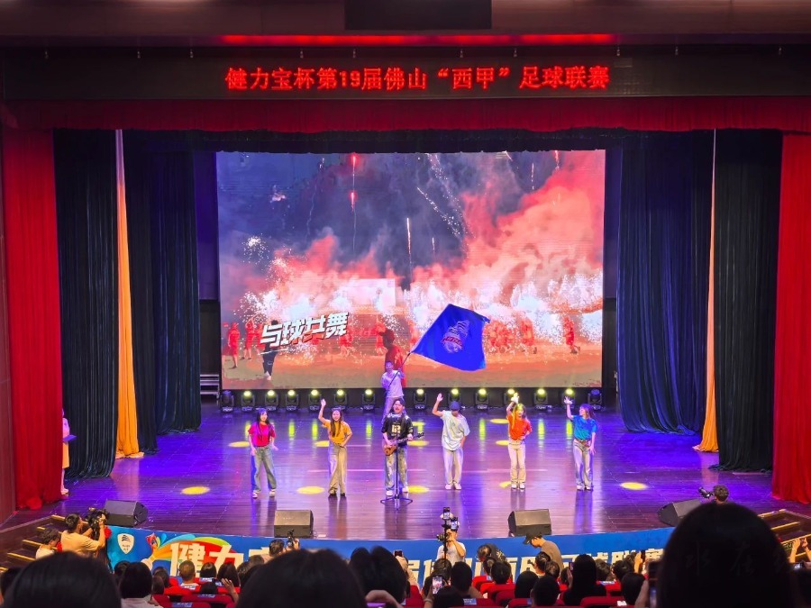 同时,还重磅发布了健力宝杯第十九届佛山“西甲”主题歌曲《夺冠之路》,这首超燃摇滚曲风的作品,传递着“全力以赴、突破自我”的体育精神,其副歌中的“与球共舞,踏上夺冠之路”更将竞技激情升华为全民狂欢的艺术表达。发布会上,40支劲旅联手佛山“西甲”推荐官强势集结,齐声高呼口号,把现场气氛推向高潮,共启佛山“西甲”绿茵盛宴。