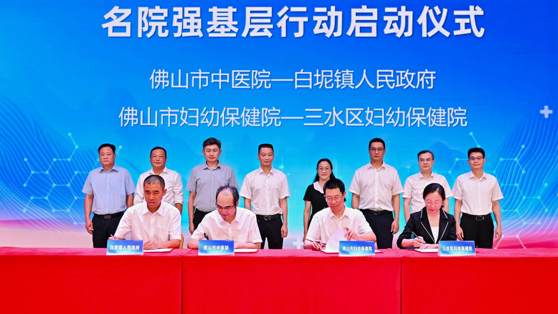 “名院强基层”结对联姻打通任督二脉, 佛山市中医院、佛山市妇幼保健院、珠江医院三水医院3家顶级三甲医院,与2家区级医院、5个镇街社区卫生服务中心(卫生院)现场“联姻”,省级优质资源将直抵镇村末梢,全面提升基层防病治病与健康管理能力。