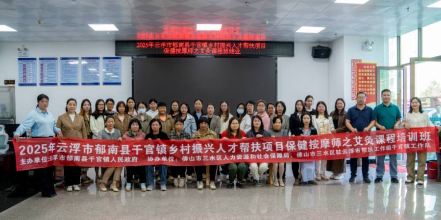 10月24日,由云浮市郁南县千官镇人民政府主办,佛山市三水区人力资源和社会保障局、佛山市三水区驻云浮市帮扶工作组千官镇工作队协办的2025年郁南县千官镇乡村振兴人才帮扶项目保健按摩师之艾灸培训班,在千官社区党群服务中心圆满落幕。作为三水驻千官镇工作队进驻以来开展的第五次就业技能培训,为期5天的课程以精准赋能为目标,为当地群众送上了兼具实用性与发展性的“技能礼包”。