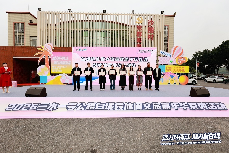 2025年12月31日,“活力环两江 魅力新白坭——2026三水环两江一号公路白坭段休闲文旅嘉年华”启动仪式在七彩花田盛大举行。市、区相关领导,行业嘉宾、文旅主理人、签约商户及新闻媒体代表齐聚一堂,共同见证这一推动佛山环两江先行区建设、助力三水“百千万工程”落地的重要时刻。