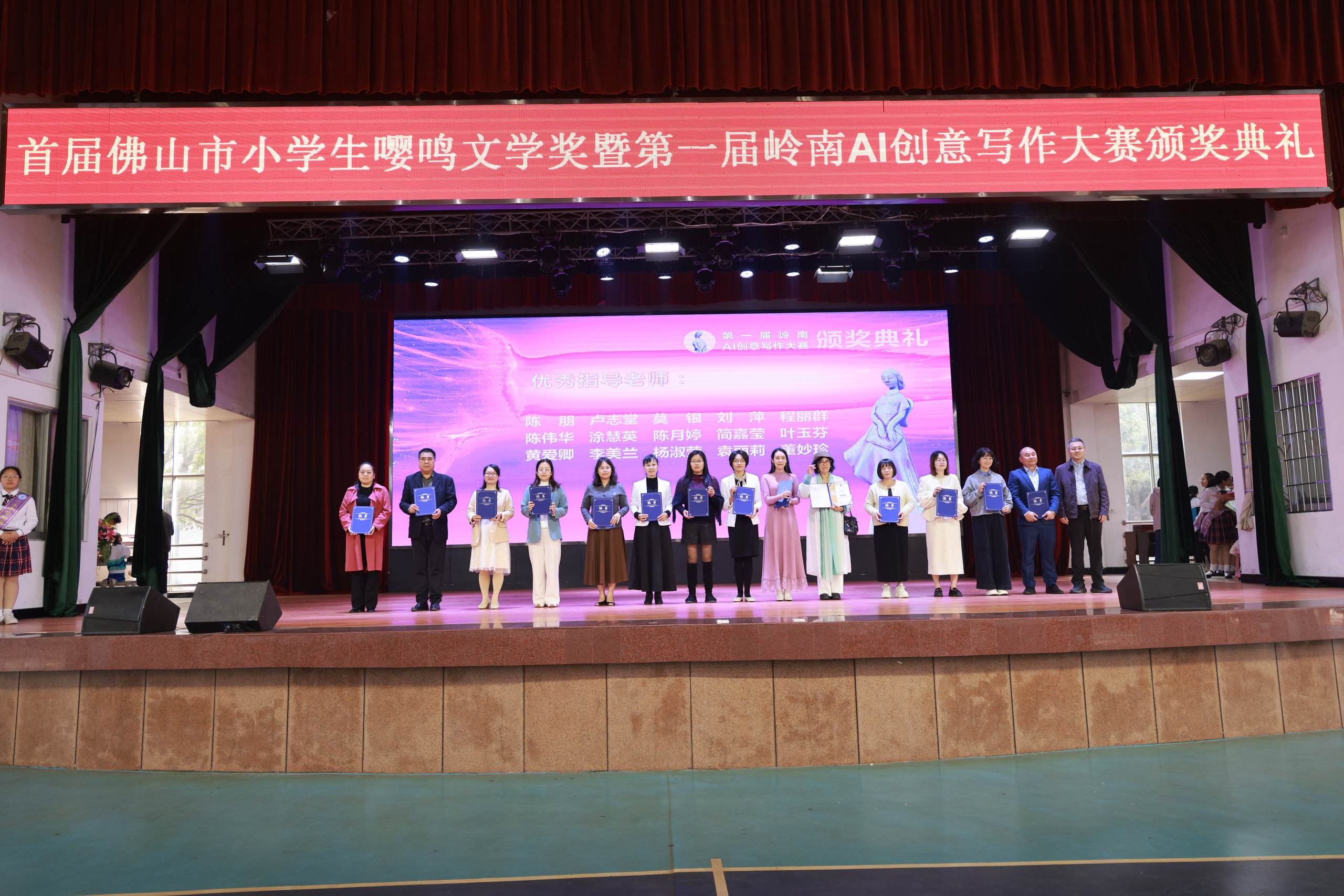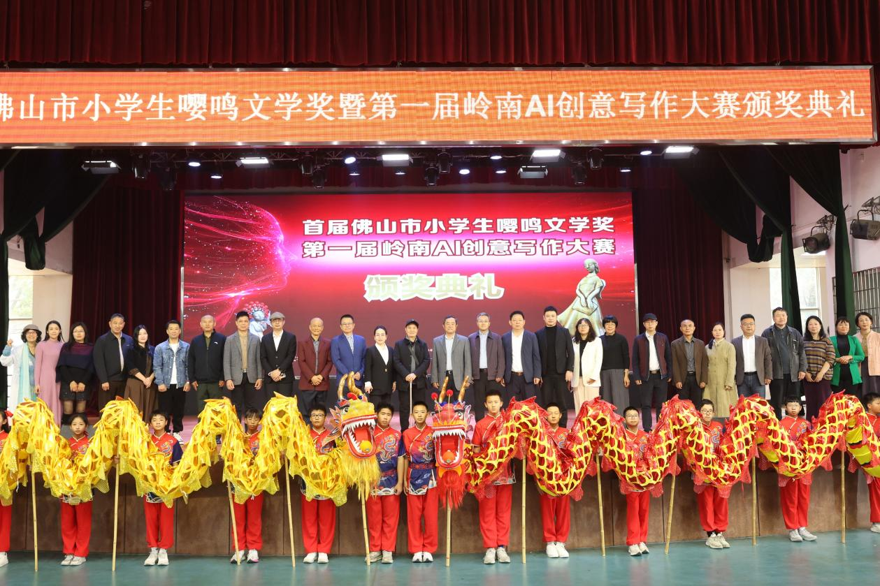 由三水区关工委、广宁县关工委指导,广东文化参考报主办的“首届佛山市小学生嘤鸣文学奖”暨“第一届岭南AI创意写作大赛”颁奖典礼在此隆重举行。这场以“文心双生 · 智创未来”为主题的盛会,不仅是一次对优秀学子的盛大嘉奖,更是一场被视为关于文化传承与教育创新的深刻对话,吸引了来自教育、文化、科技等领域的众多嘉宾及师生代表逾千人齐聚一堂。