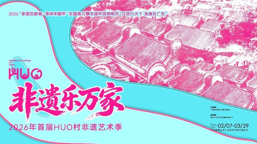 由广东省非物质文化遗产促进会主办、佛山市三水乐平投资集团有限公司承办的“非遗乐万家”2026年首届“HUO村”非遗艺术季(2026“非遗贺新春·寻味中国年”暨非遗年货购物月“广货行天下 美食在广东”主题推广系列活动)即将在乐平镇火热启幕。