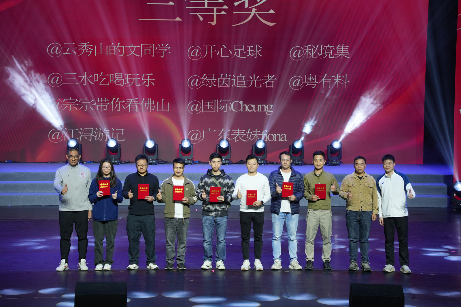 汇演现场还举行了“活力职工·热血省港”足球赛事短视频创作大赛颁奖仪式。该大赛由三水区足球协会主办、佛山市燊业网络技术有限公司执行,奖金池高达8万元,覆盖2025年佛山“西甲”“工会杯”及2026年省港杯超级足球邀请赛全程,吸引了广大市民、自媒体达人及短视频爱好者参与,参赛者用镜头捕捉赛事精彩、讲述足球故事,传递城市正能量与足球文化魅力,颁奖环节为大赛画上圆满句号,进一步点燃了全民参与足球运动的热情。