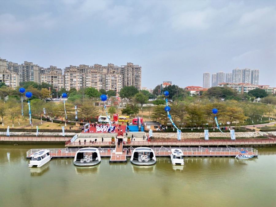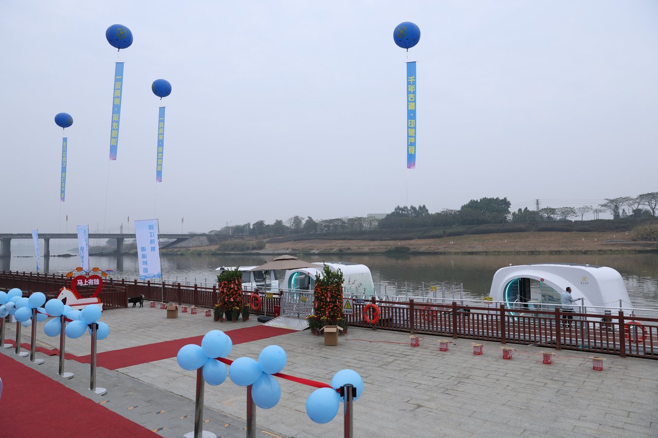 欢迎来到芦苞水道无人驾驶智能游船体验站。在游船驿站购票或验票后,佩戴上智能救生手环,便可登船,开始一段科技与自然相融的旅程。