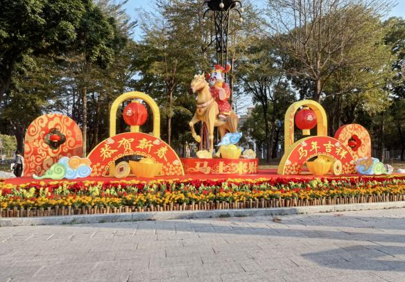 为让市民游客沉浸式感受马年新春氛围,西南街道在西南公园、左岸公园、张边出入口布置《马到成功》《马年大吉》《马上来财》三大大型马年主题灯组,大黄菊、圣诞花、金鱼草等时花环绕灯组绽放,红火灯笼高悬于主干道,吸引市民游客自发拍摄的视频、打卡照片刷屏朋友圈。