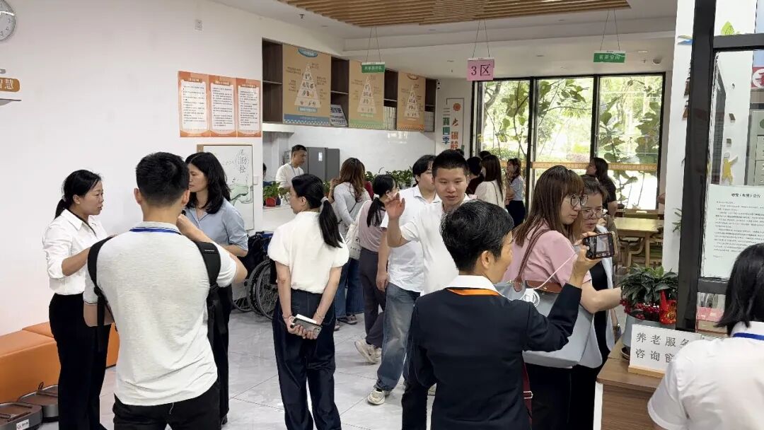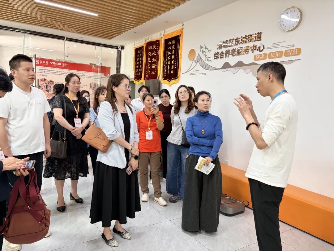 随后,三水区人社局及企业代表一行实地参观了清远东城智慧社区服务中心,重点考察了围绕家政服务进社区的配套设施建设与运营模式。东城智慧社区服务中心以“新家政进社区”为核心理念,精心打造并运营“一老一小”服务设施:面向0-3岁婴幼儿,提供一站式“智慧社区托育服务”,让年轻父母“托得放心、送得方便”;面向长者,围绕“衣、食、住、行、医、养、乐、护”八大维度,提供高品质的综合性养老服务,切实增强社区居民的幸福感和安全感。参观过程中,企业代表们边走边看、边问边记,对社区用房的功能布局、运营机制和服务理念赞不绝口。大家纷纷表示“学到了很多”,现场有多位代表主动添加了东城智慧社区服务中心负责人的联系方式,希望后续能持续学习讨教,将好的经验带回三水,推动本地家政进社区服务落地生根。下一步,三水区人社局将持续深化“南粤家政”工程建设,进一步整合政校企资源,推动更多优质合作项目落地见效,助力三水家庭服务业实现高质量、高层次发展,为更多青年人才在三水安居乐业、成就梦想提供广阔舞台。