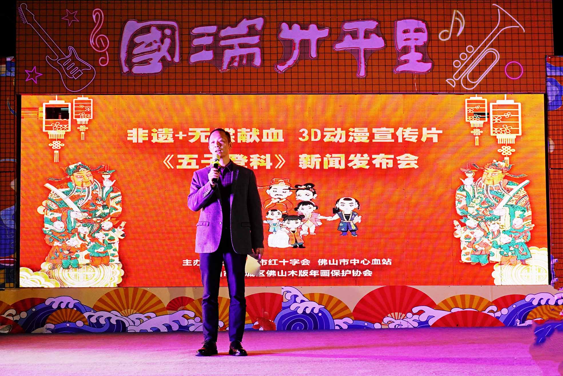 《老江有话说》栏目报道:冬至临近,为了让寒冷的天气增加一股暖流,润泽广大无偿献血者和用血者的心田。市红十字会、市中心血站携手佛山木板年画保护协会,开展生动有趣的形式宣传无偿献血,首次将无偿献血与木版年画中“五子登科”的元素融合,改编了传统民谣做成生动的动画MV,并创作一系列的动漫情节故事,拨新领异,吸引眼球,刷新无偿献血宣传新视野,并于12月3日晚上在禅城区国瑞升平里大舞台举行新闻发布会。