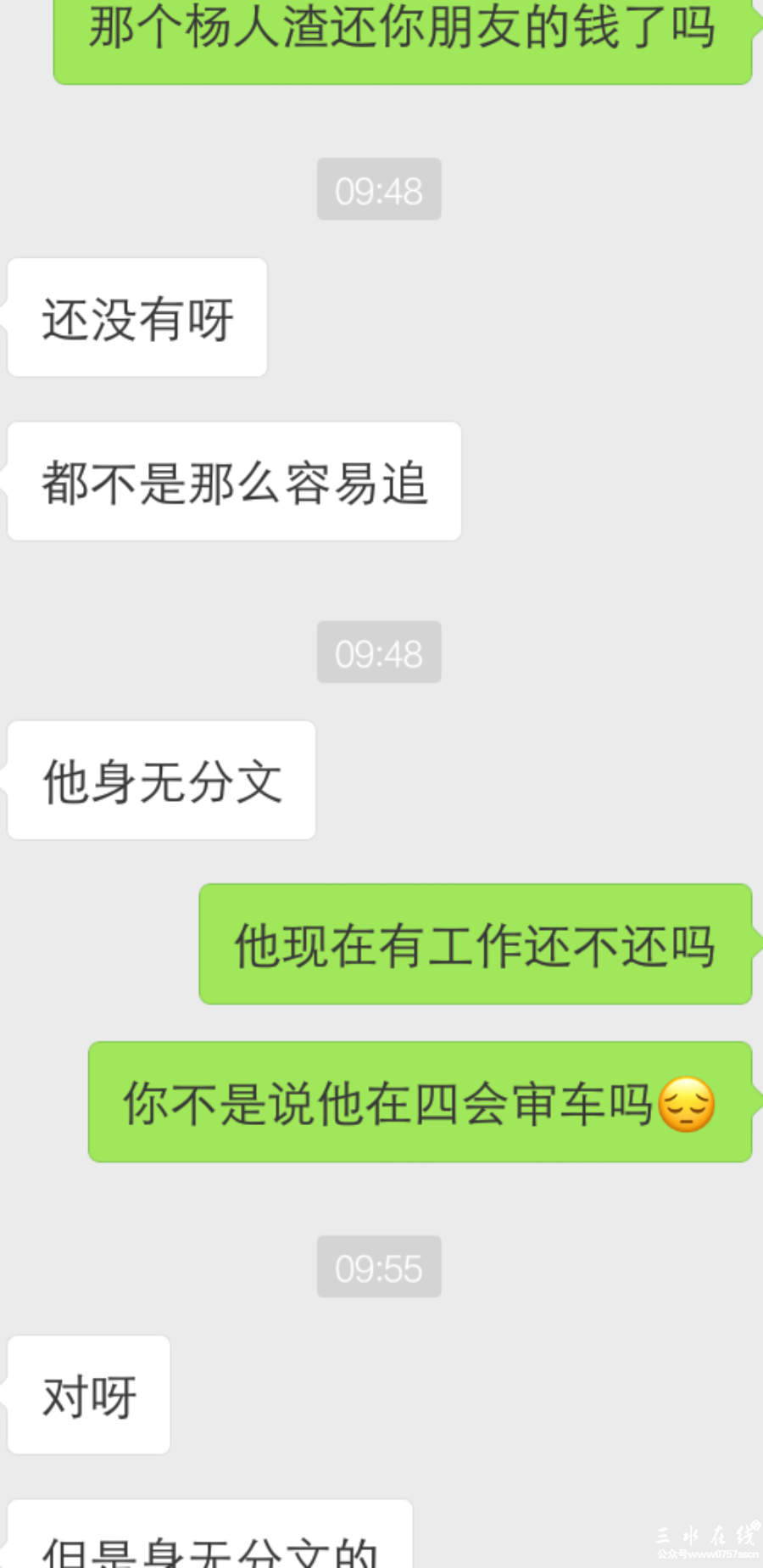 #讨论#失信人:三水大塘骗子杨剑雄。借钱不还,望广大女生引以为戒,远离此人渣!(留言里附多图)