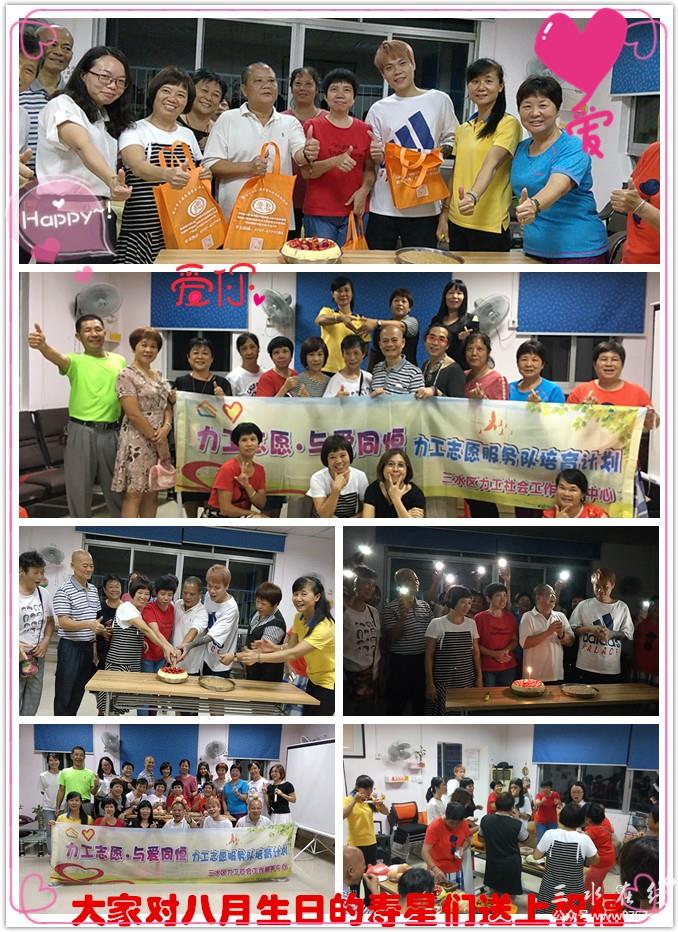 文峰东T站洋溢着喜气洋洋的欢乐,本次生日会由金牌主持小丁、小明二位志愿者协力开展,20多人一起参与到热身游戏中,团队的凝聚力展现无违。悠扬的音乐声中,我们八月份生日的寿星们接受着大家祝福,分享着由志愿者们亲手制作及购买的美食及生活感悟。