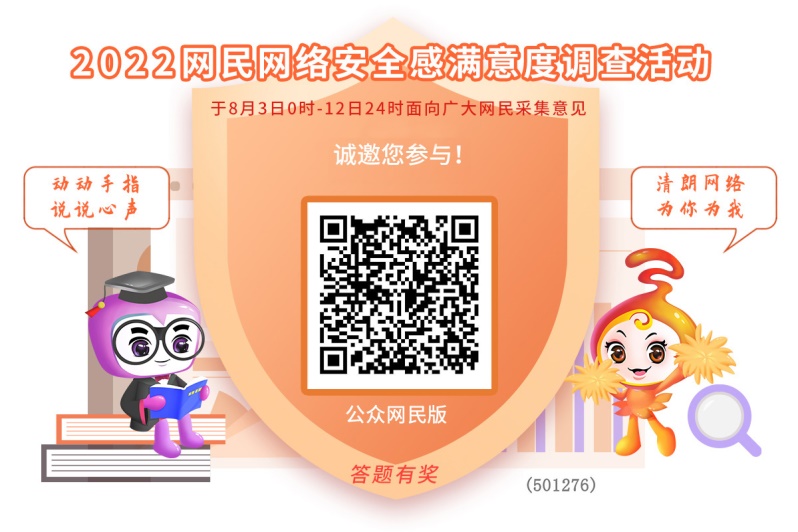 据介绍,调查活动是贯彻落实习近平总书记“网络安全为人民、网络安全靠人民”精神,了解反映广大网民对我国网络安全状况感受和建议,国内调查范围最广、参与人数最多的全国性大型公益网络社会调查。