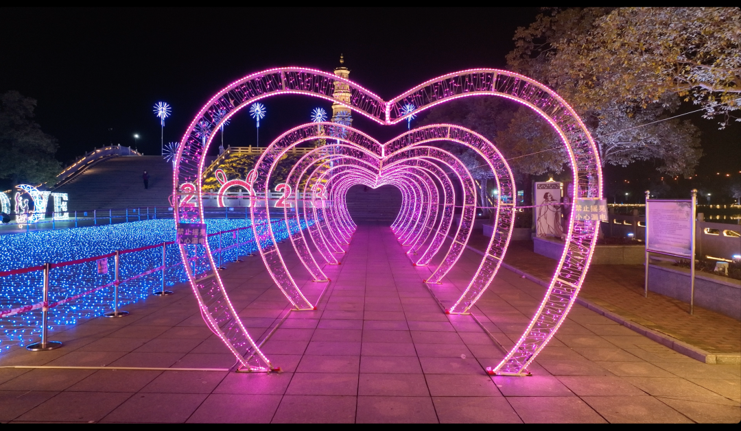 灯光花海、浪漫心形步道、