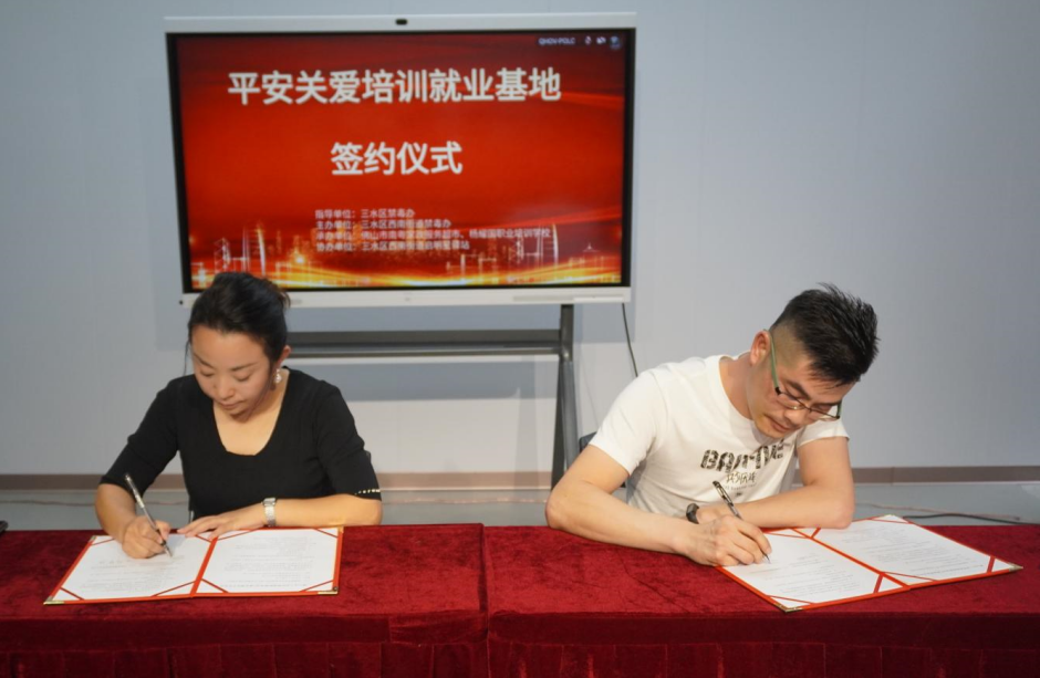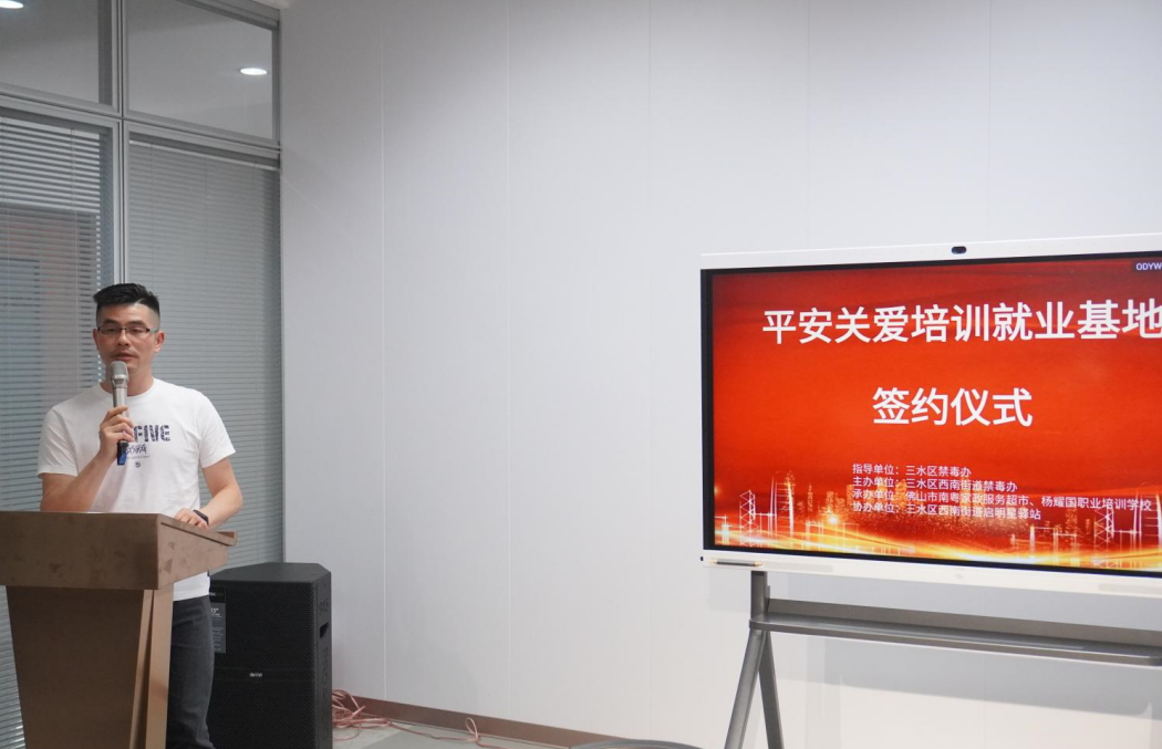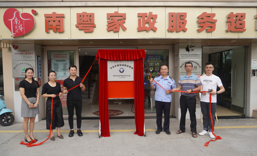 2023年8月15日,三水区西南街道禁毒办联合三水区杨耀国职业培训学校、佛山市南粤家政服务超市(以下简称南粤家政)在杨耀国职业培训学校举办了“就业帮扶有力度,平安关爱添阵地”签约揭牌仪式。三水区公安分局禁毒大队大队长潘达翔、西南街道综合治理办主任罗国显、西南街道禁毒办专职副主任刘赞强、南粤家政服务超市负责人全翠萍以及杨耀国职业培训学校张艳平出席了本次活动。
