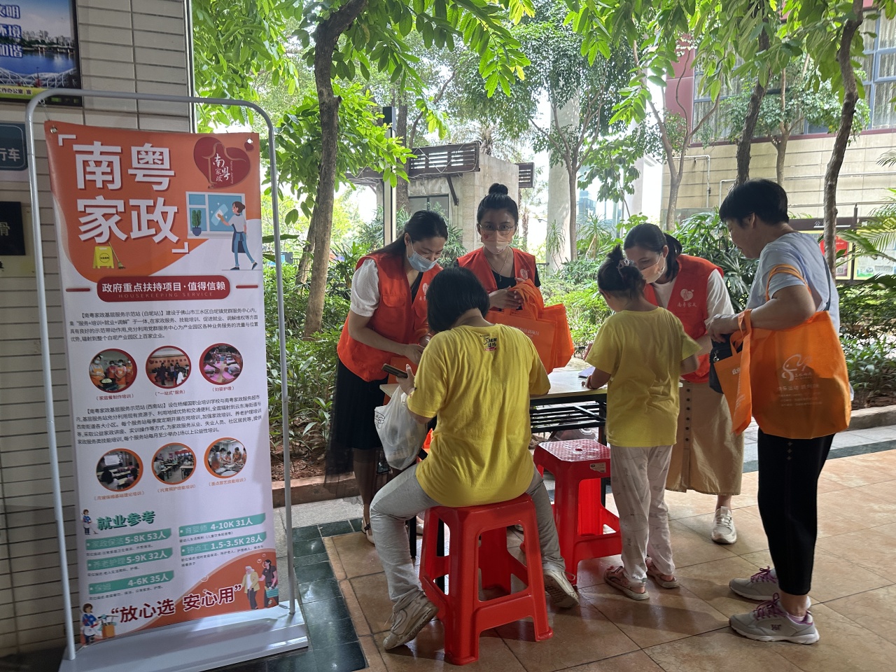 活动现场,“南粤家政”基层服务示范站的工作人员积极为居民群众提供就业登记推荐、就业扶持等政策解读,还有就业岗位信息招聘、家政服务技能培训咨询等。