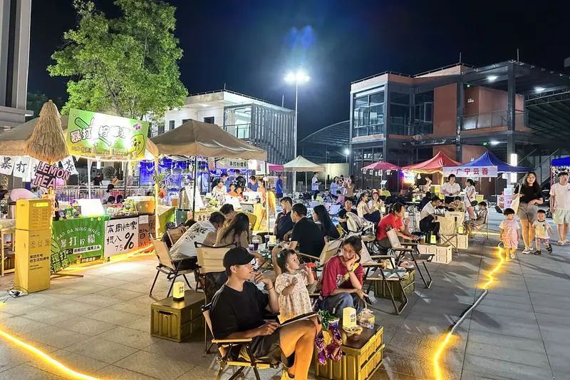 啤酒广场,佛山“西甲”夜市吸引许多市民前来消费。/佛山市新闻传媒中心记者张弘弢摄