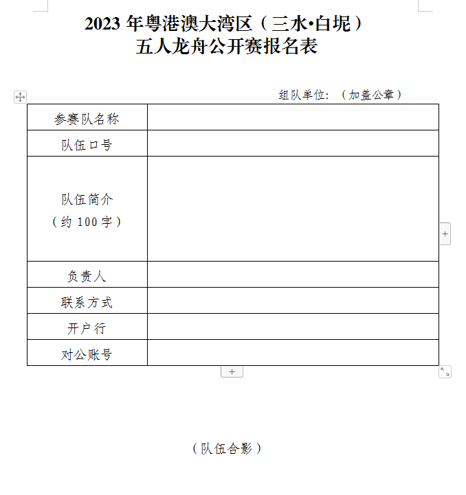 (二)公开组队伍须由粤港澳大湾区工作、生活的居民以行政事业单位、村(居)、企业(不含个体工商户)、社会团体(经民政部门注册)等名义组队并加盖公章报名。