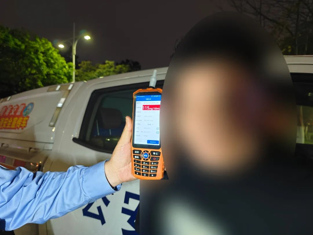 4月6日凌晨,佛山市公安局南海分局交警大队在南海区桂澜路东海银湾附近设卡查车时,一辆鄂A号牌小车突然紧急停车,驾驶人企图逃避检查。民警迅速反应,上前拦截并对驾驶员杨某进行现场呼气酒精测试,结果显示,杨某体内酒精含量高达115mg/100ml,涉嫌醉酒驾驶。