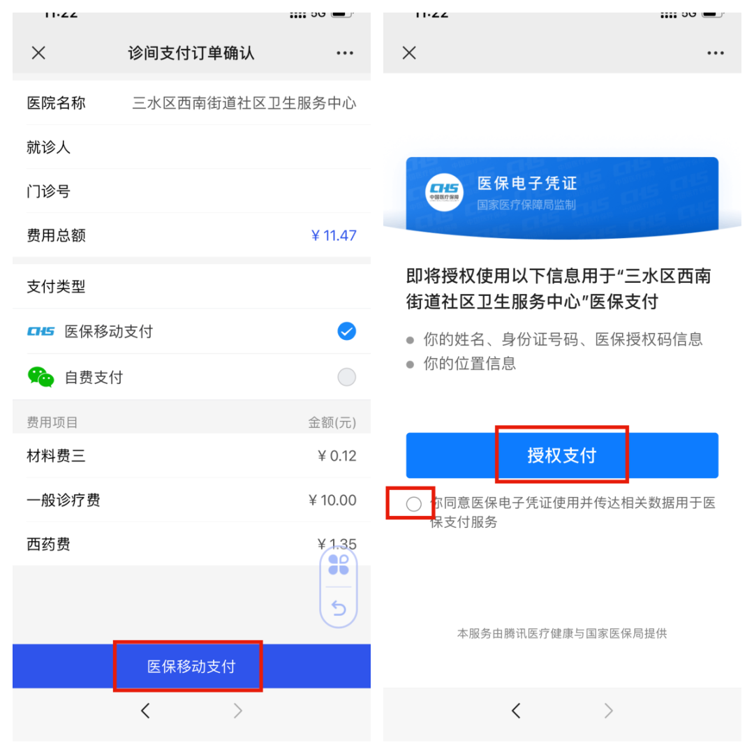 3、进行医保电子凭证授权支付