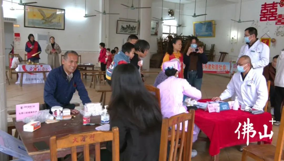 在白坭镇大岗村,医护人员正在为长者进行体检。佛山市新闻传媒中心记者蔡永智摄
