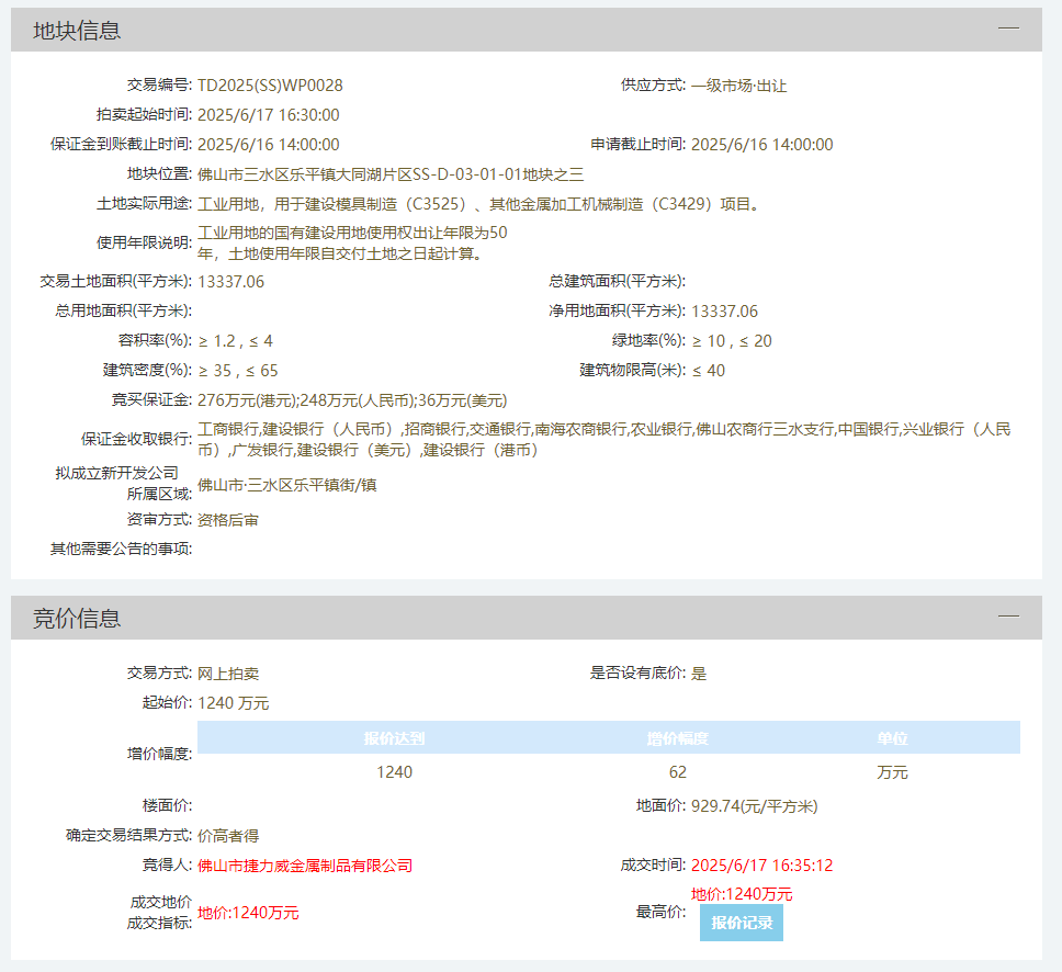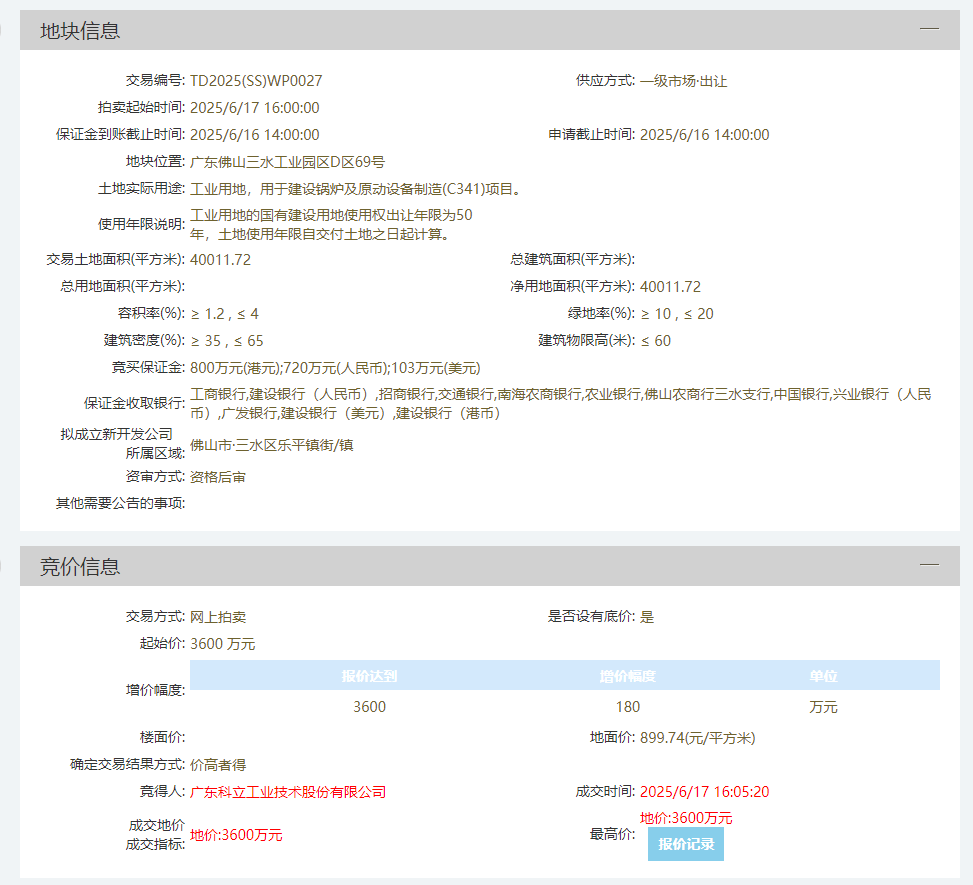 6月17日,三水区乐平镇产业项目摘牌迎来“双响炮”:两大扎根本地的优质企业——广东科立工业技术股份有限公司与佛山市捷力威金属制品有限公司同日成功摘牌工业用地,总投资额达16亿元,用地面积共80亩。项目达产后,预计年新增产值8.6亿元。