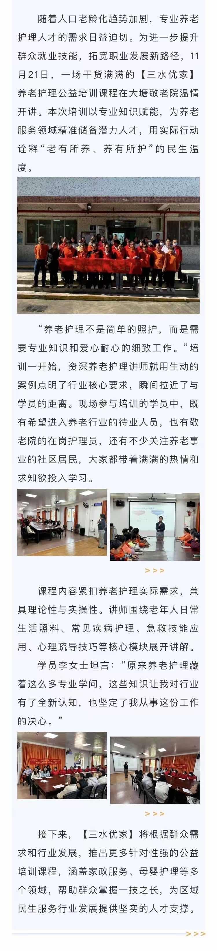 • #我为群众办实事#【三水优家】三水优家养老护理公益培训开讲,为爱心续航,为就业助力!