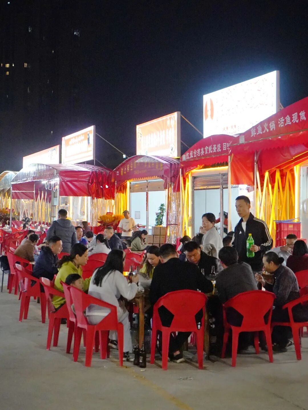 下午五点刚过,店家与摊主们便陆续就位,随着天色渐暗,灯光闪闪的摊位连成一条蜿蜒的长龙,空气中弥漫着各种美食的香气,吸引着四面八方涌来的食客。