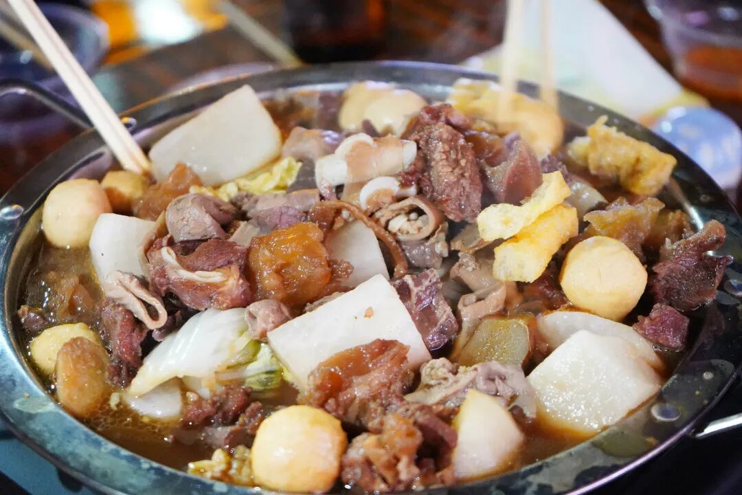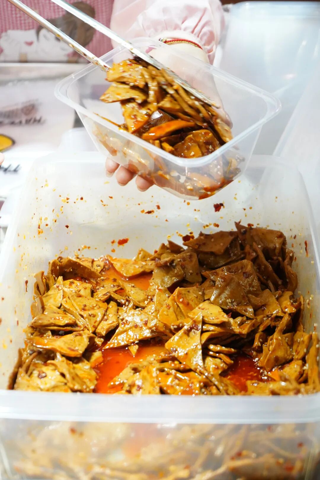 特色牛杂摊位也围满了人,牛杂在浓郁的汤汁中翻滚,散发出诱人的香气。