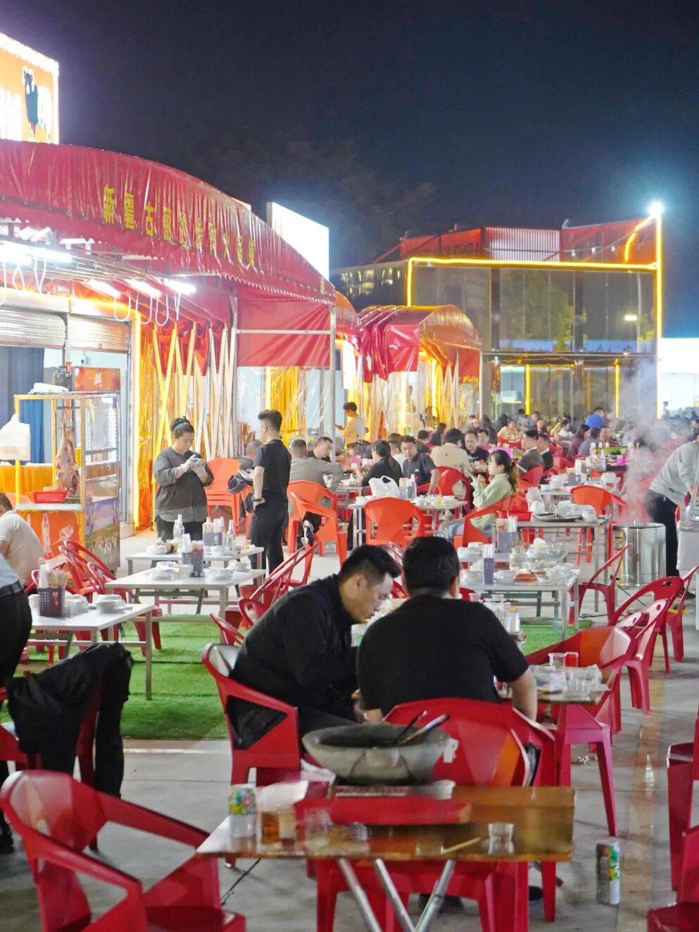 夜市项目主管介绍,新城夜市所在的商业项目占地34亩,现在新城夜市开发了3500m²,计划打造一个汇集超百家商户的夜市经济体,目前进驻商家已超30家。