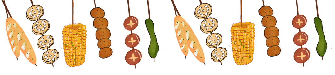 麻辣烫摊位前,各种食材在汤中翻滚,吸满了汤汁的鲜美。