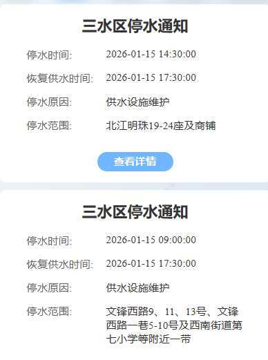 #我为群众办实事#后天!三水以下小区与路段停水!请做好储水准备