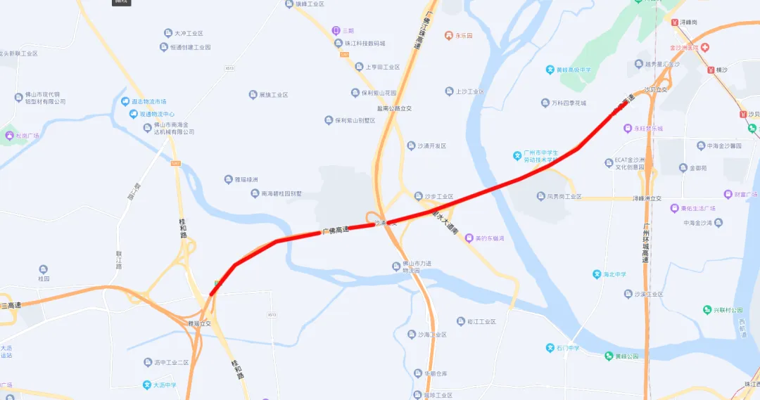 沙涌(里水大道)出入口、广佛肇高速里和路东出口、海八路桂江立交、龙高路、佛罗伦萨小镇对出路段。