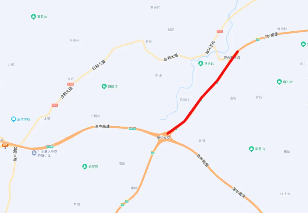 G359国道(合和大道)与广台高速更合西出入口交叉口。