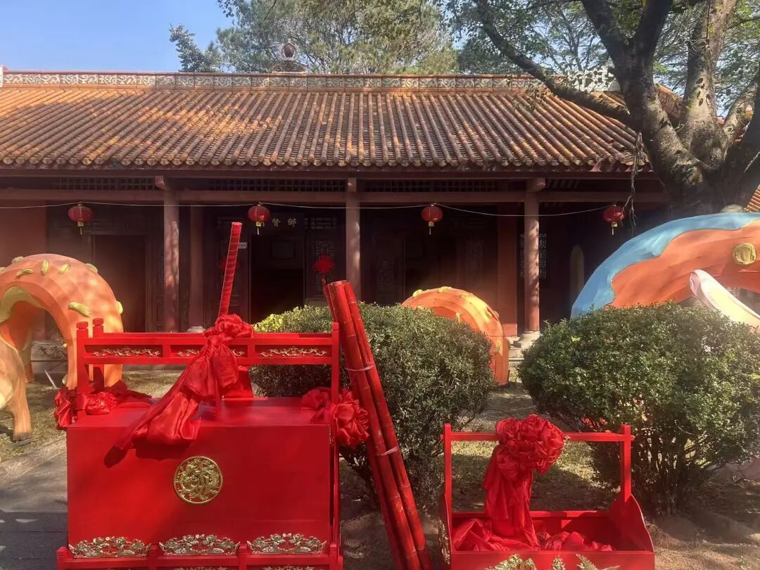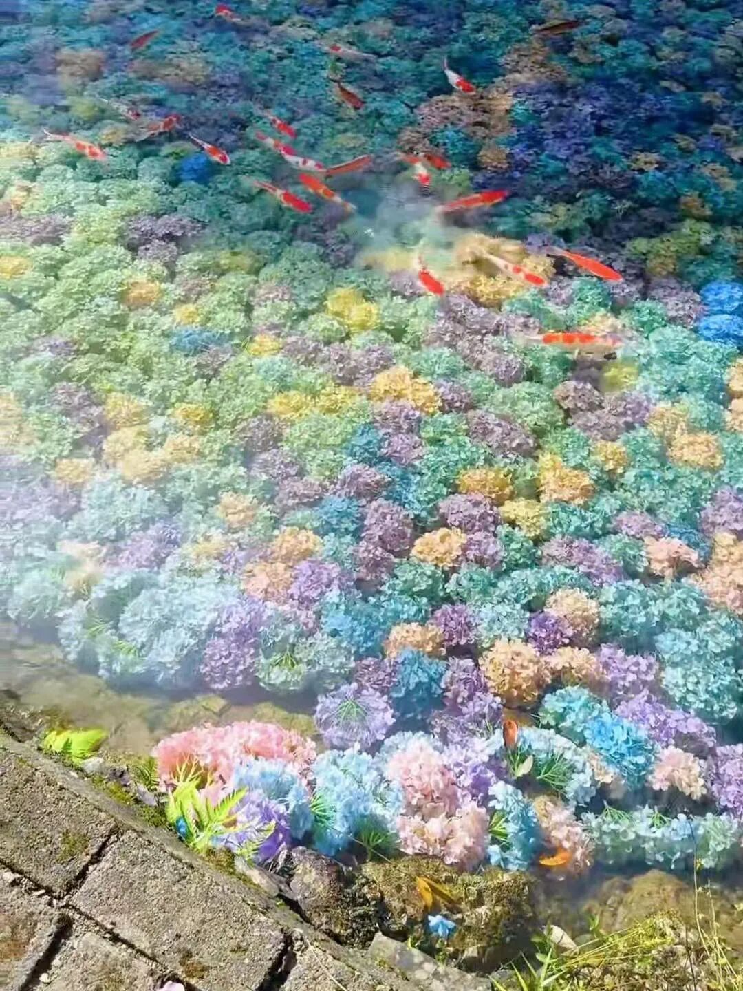 唯美花海: 10亩花海盛开,体验围炉煮茶,打卡7米高“祈福状元帽” 。