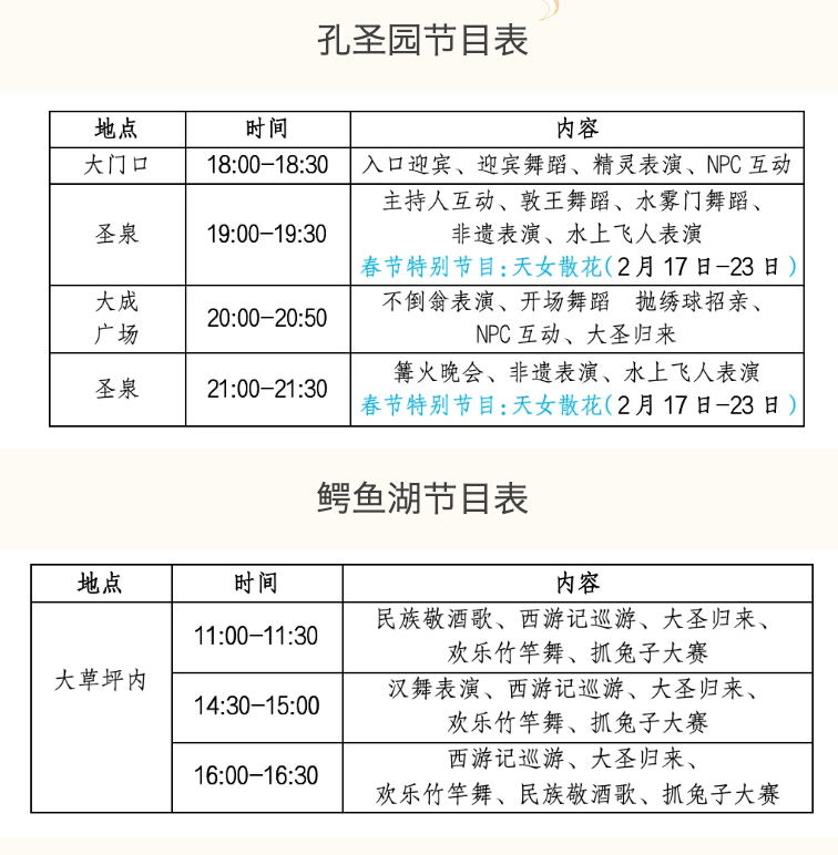 杏坛六艺闯关: 凭“金榜题名卡”挑战御、射、礼、数、书、乐六大关卡 。(闯关和“银票拍卖”时间2月17日-2月23日 10:30~12:00,下午14:30~16:00)
